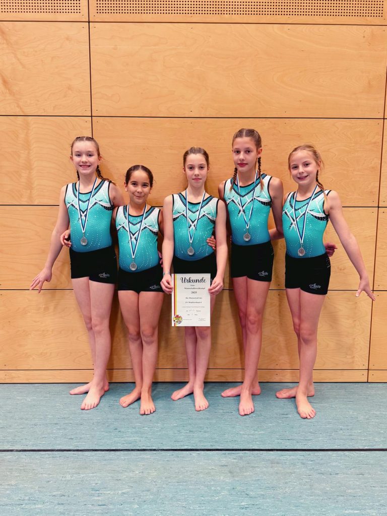 Die Mannschaften des Jahrgangs 2013 und jünger sicherten sich die Silber- und Bronzemedaille. Insgesamt sind 5 Mannschaften in diesem Jahrgang gestartet. Die Mannschaft mit Sarah Merz, Nija Maggi Plank, Loana Dill, Mila Grimm und Marie Kiesgen sicherte sich die Silbermedaille. Die zweite Mannschaft wurde von Ella Schmidt, Johanna Wiedersum, Anni Spielmann, Lea Esche und Mira Seibel vertreten. Sie platzierten sich auf dem dritten Platz und erzielten am Sprung die meisten Punkte. Aus beiden Mannschaften zeigten Turnerinnen ihre ersten Überschläge über den Tisch. Ebenso wurden starke Salti, Flickflacks und Überschläge am Boden geturnt.